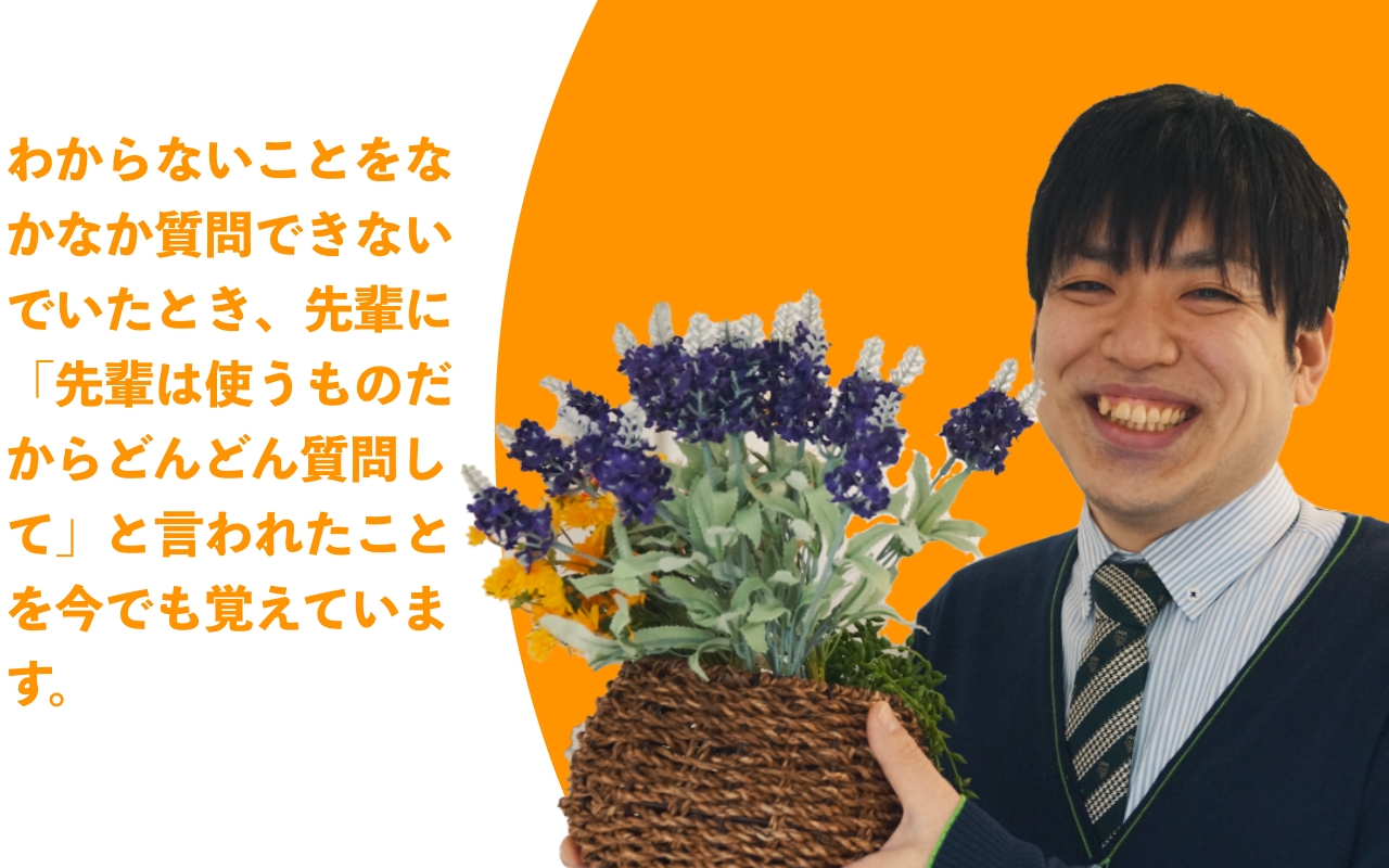 入職時から年齢の近い先輩職員がチューター(育成担当)に付くので、仕事のサポートや困った時の相談に寄り添います。