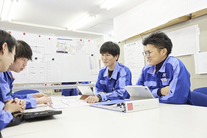 7ヶ月間の研修後、施工管理・設計業務に就きます。技術の要となる仕事で、常に複数人で業務を行い、わからないことは先輩に相談できる環境が整っています。
